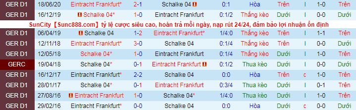 + Lịch sử đối đầu Eintracht Frankfurt vs Schalke 04
