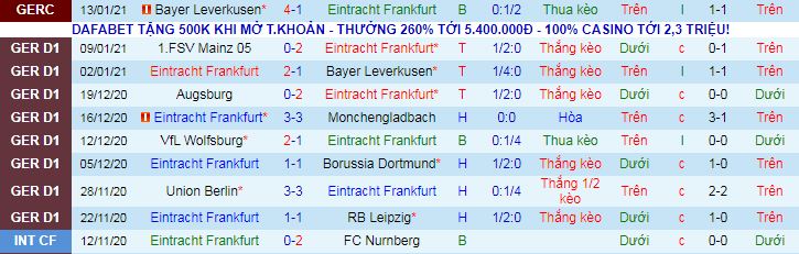 + Thống kê 10 trận gần nhất của Eintracht Frankfurt