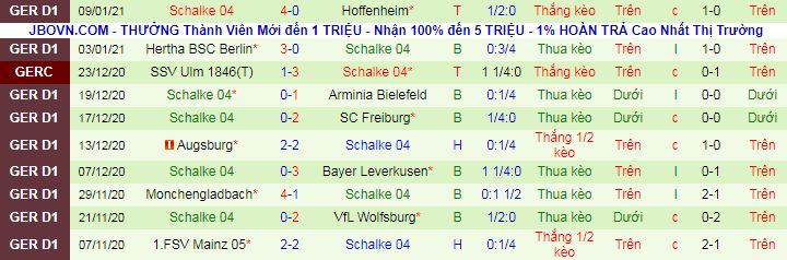 + Thống kê 10 trận gần nhất của Schalke 04