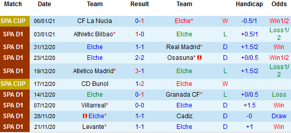 + Thống kê 10 trận gần nhất của Elche