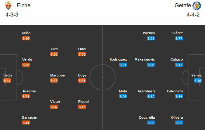 Đội hình dự kiến Elche vs Getafe: