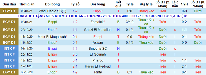 - Thống kê 10 trận gần nhất của ENPPI Cairo