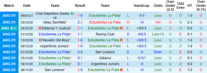 + Thống kê 10 trận gần nhất của Estudiantes La Plata