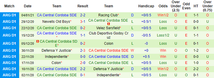 + Thống kê 10 trận gần nhất của Central Cordoba