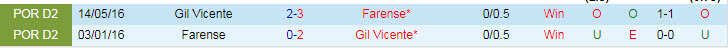 Phong độ và thống kê đối đầu Farense - Gil Vicente gần đây: