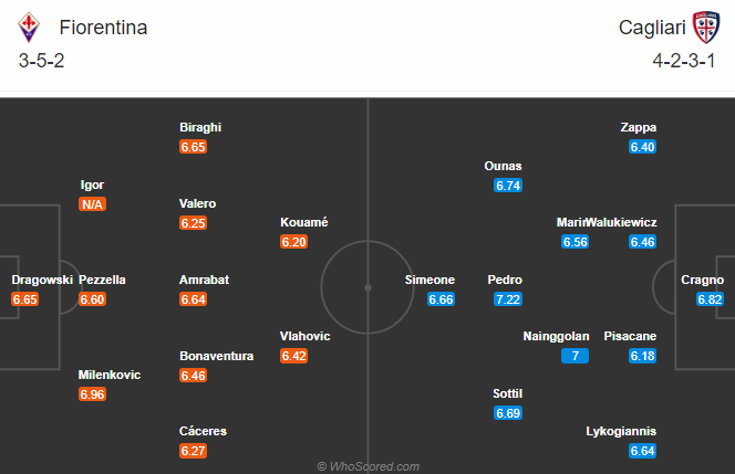 Đội hình dự kiến Fiorentina vs Cagliari