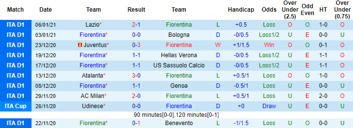 + Thống kê 10 trận gần nhất của Fiorentina