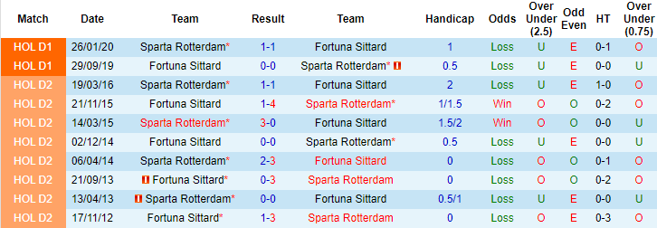 Sparta Rotterdam luôn được đánh giá cao hơn Fortuna Sittard ở các cuộc đối đầu. 3 lần chạm trán Fortuna Sittard gần đây, Sparta Rotterdam chấp từ -1/2 đến -2 theo kèo châu Á nhưng kết quả cả 3 trận đấu đó đều khép lại với tỷ số hòa. Lần tái đấu sắp tới, Fortuna Sittard thậm chí còn được tin tưởng vào khả năng đánh bại Sparta Rotterdam.