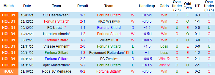 + Thống kê 10 trận gần nhất của Fortuna Sittard