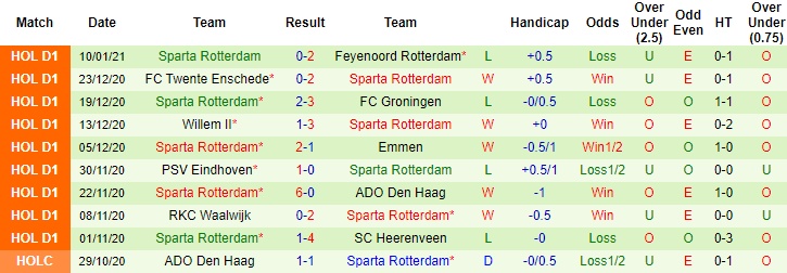 + Thống kê 10 trận gần nhất của Sparta Rotterdam