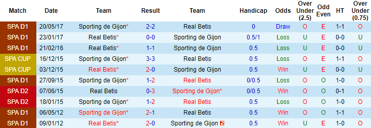Gijon không có được thành tích đối đầu tốt trước Betis. Trong vòng 12 trận đối đầu trước đây tính trên mọi đấu trường, Gijon chỉ thắng được 2 trận, còn lại 4 trận hòa, 6 thất bại. Mùa giải này Gijon thi đấu ở giải hạng 2 Tây Ban Nha, Betis là đại diện của La Liga. Vì vậy ở lần tái đấu sắp tới trong khuôn khổ Cúp Nhà vua, Gijon càng tỏ ra lép vế so với đối thủ về mặt lý thuyết.