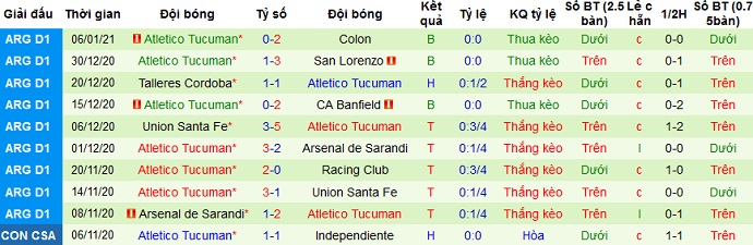Tuy nhiên trận duy nhất Tucumán có điểm lại diễn ra trên sân khách. Thành tích du đấu của đội bóng cũng khá tốt khi trước đó đội bóng có được 3 trận thắng và 1 trận thua trong tất cả các lần du đấu kể từ mùa giải mới.