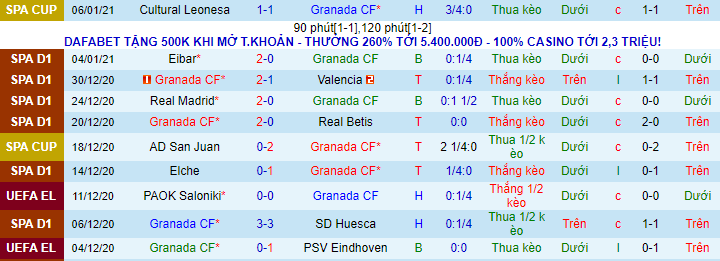 + Thống kê 10 trận gần nhất của Granada