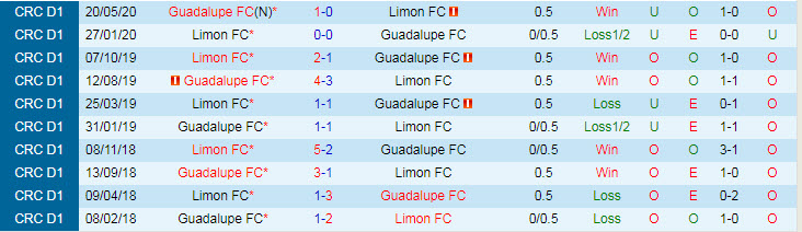 Phong độ và thống kê đối đầu Guadalupe - Limon gần đây: