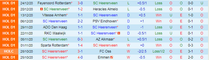 + Thống kê 10 trận gần nhất của Heerenveen