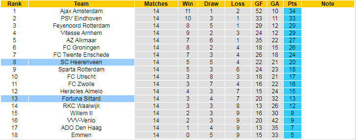 Đêm nay, dù được chơi trên sân nhà song với phong độ nghèo nàn kể trên, NHM không bất ngờ nếu Heerenveen sẽ kéo dài chuỗi trận không thắng của mình lên thành con số 8 trận liên tiếp. Kịch bản này càng dễ xảy ra khi đối thủ của họ là cái tên cứng đầu Fortuna Sittard.