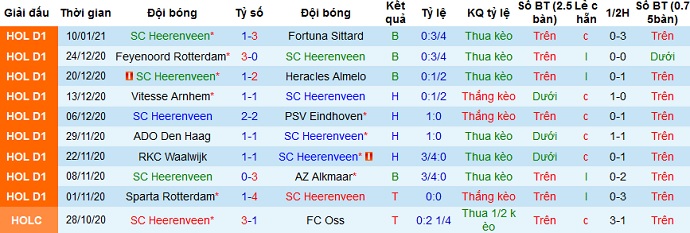 + Thống kê 10 trận gần nhất của Heerenveen