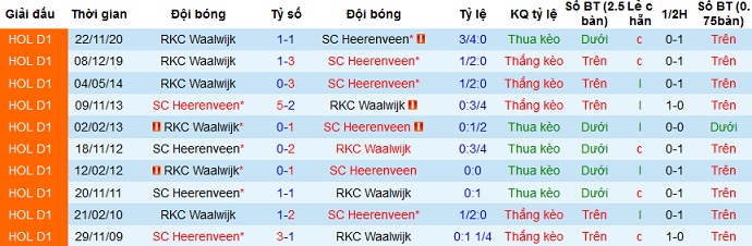 + Lịch sử đối đầu Heerenveen vs Waalwijk
