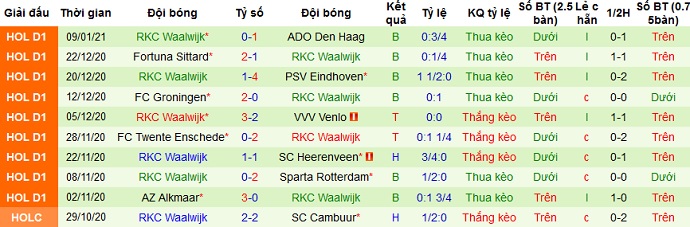 Sau trận thắng trước VVV ở vòng 11 với tỷ số 3-2, Waalwijk đang để thua trong cả 4 trận gần nhất. Thế nhưng trên sân khách thành tích của đội bóng lại không đến mức quá tệ với 2 trận thắng và 3 trận thua ở 5 lần du đấu gần nhất.