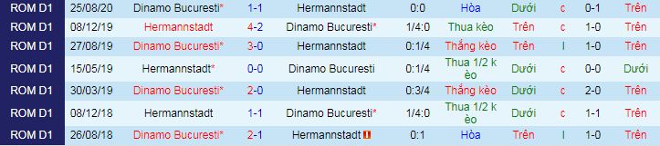 + Lịch sử đối đầu Hermannstadt vs Dinamo Bucuresti