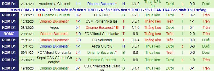 + Thống kê 10 trận gần nhất của Dinamo Bucuresti