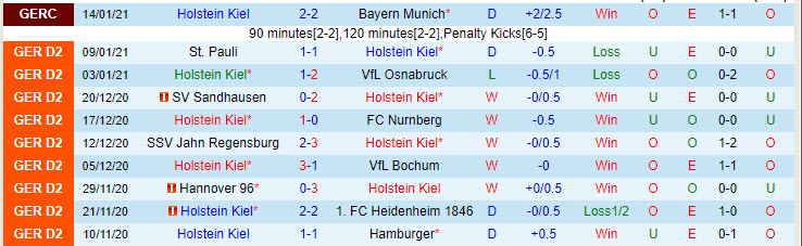 + Thống kê 10 trận gần nhất của Holstein Kiel