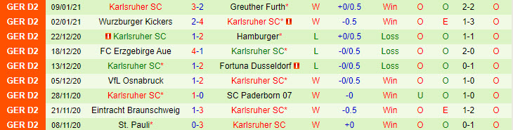+ Thống kê 10 trận gần nhất của Karlsruher