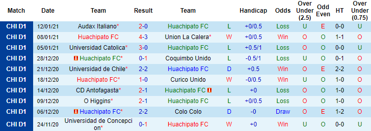 + Thống kê 10 trận gần nhất của Huachipato