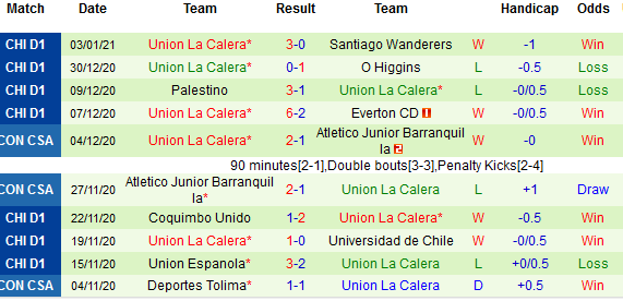 + Thống kê 10 trận gần nhất của Union La Calera