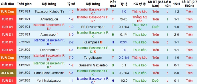 + Thống kê 10 trận gần nhất của Istanbul Basaksehir