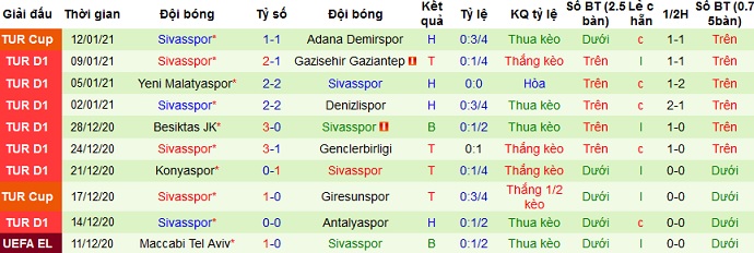 Trong khi đó Sivasspor cũng có được 2 trận thắng, 2 trận hòa và để thua1 trận ở 5 trận gần nhất. Tuy nhiên trên sân khách Sivasspor chỉ thắng 1, hòa 2 và để thua 2 ở 5 lần du đấu gần nhất.