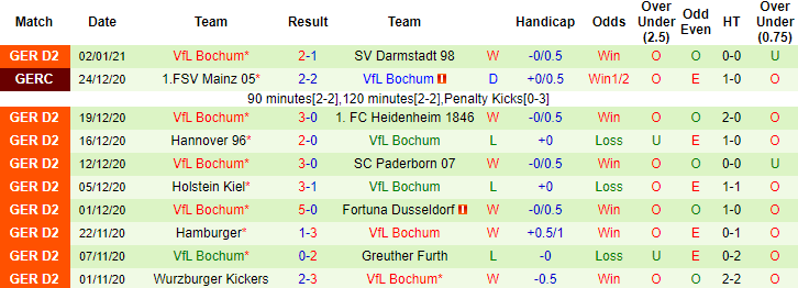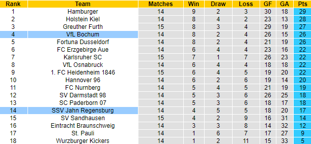 Sau 14 trận tại Bundesliga 2 mùa này, Bochum đã giành được 26 điểm, xếp ở vị trí thứ 4 trên bảng xếp hạng. Với lực lượng ổn định, Bochum đang rất tự tin với phong độ vào phom, 3 trận vừa qua họ đạt thành tích toàn thắng cả về tỷ số và kèo châu Á.