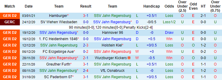 + Thống kê 10 trận gần nhất của Jahn Regensburg