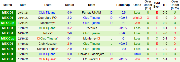 Tijuana được coi là ông lớn của bóng đá Mexico. Tuy nhiên đội bóng này đã cho thấy sự sa sút từ giai đoạn 1 mùa giải 2020/21, sau 17 vòng đấu họ chỉ giành được 15 điểm, cán đích ở vị trí thứ 15 trên bảng xếp hạng. Trận ra quân ở giai đoạn 2, Tijuana bị Pumas UNAM cầm hòa 0-0 ngay trên sân nhà, qua đó nối dài chuỗi trận bất thắng lên con số 9 (thua 5, hòa 4).