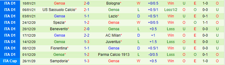 + Thống kê 10 trận gần nhất của Genoa