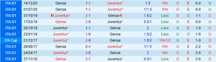 Phong độ và thống kê đối đầu Juventus - Genoa gần đây: