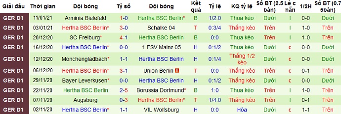 + Thống kê 10 trận gần nhất của Hertha BSC
