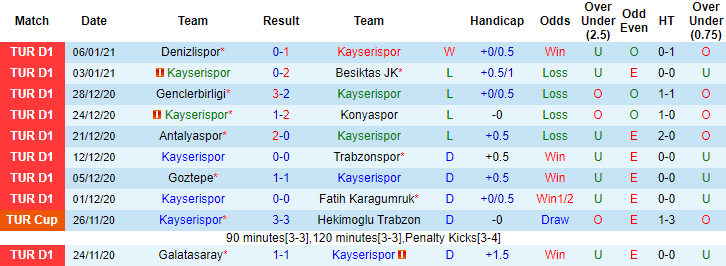 + Thống kê 10 trận gần nhất của Kayserispor