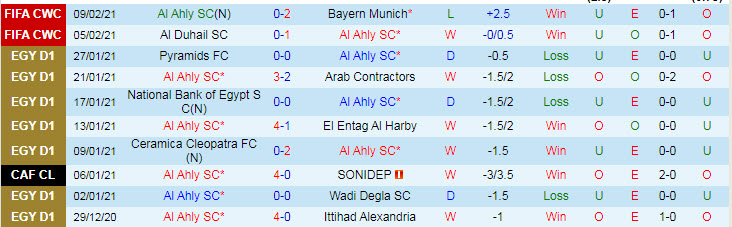 + Thống kê 10 trận gần nhất của Al Ahly