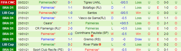 + Thống kê 10 trận gần nhất của Palmeiras