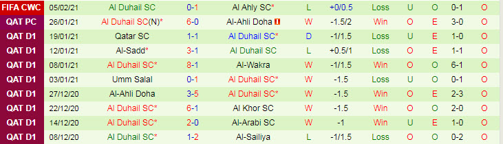 + Thống kê 10 trận gần nhất của Al Duhail