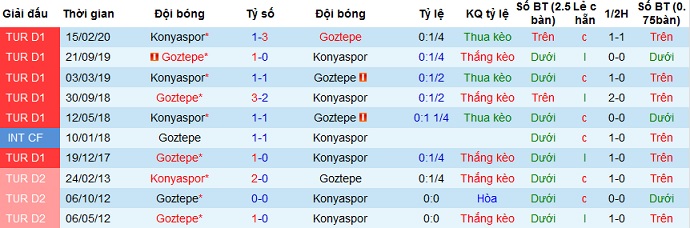 + Lịch sử đối đầu Konyaspor vs Göztepe