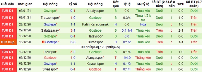 + Thống kê 10 trận gần nhất của Göztepe