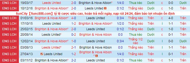 + Lịch sử đối đầu Leeds vs Brighton