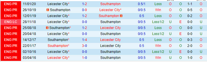 Phong độ và thống kê đối đầu Leicester - Southampton gần đây: