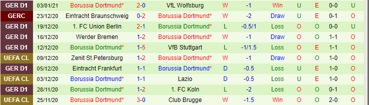Sau chuỗi phong độ thất thường những vòng đấu cuối cùng của năm 2020 (thua 3, hoà 1 và thắng đúng 1 trận), Dortmund có trận đấu mở đầu năm 2021 đầy hứng khởi. Cụ thể, họ đã đánh bại Wolfsburg với tỷ số 2-0 trên sân nhà tại vòng 14 giải VĐQG Đức.