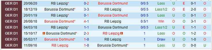 Phong độ và thống kê đối đầu Leipzig vs Dortmund gần đây:
