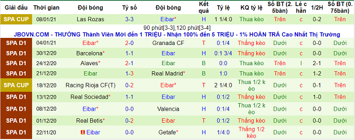 - Thống kê 10 trận gần nhất của Eibar