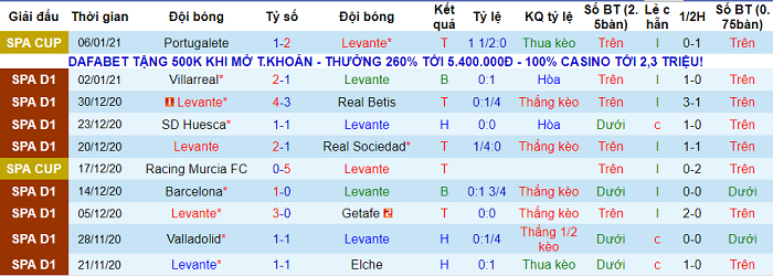 - Thống kê 10 trận gần nhất của Levante