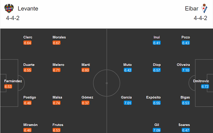 Đội hình dự kiến Levante vs Eibar